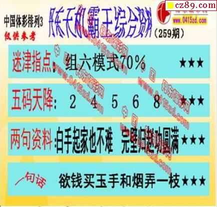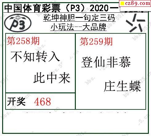 2020年259期牛彩网体彩P3画迷图谜汇总分享