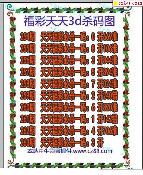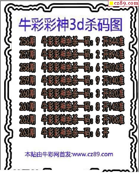 牛彩版3D预测彩报图26年030期打印版
