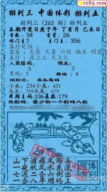 2020年263期牛彩网体彩P3画迷图谜汇总分享