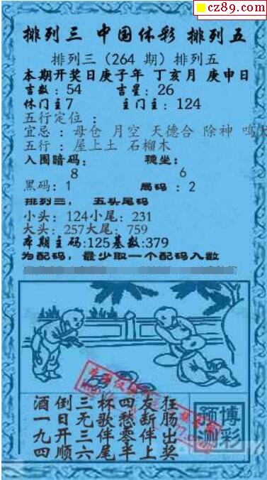 2020年264期牛彩网体彩P3画迷图谜汇总分享