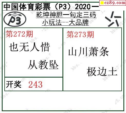 2020年273期牛彩网体彩P3画迷图谜汇总分享