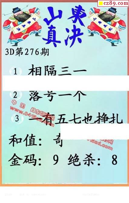 福彩3D2025337期 祁连牧哥百财纳福胆码图谜推荐