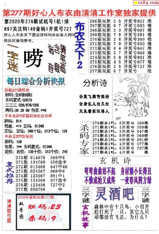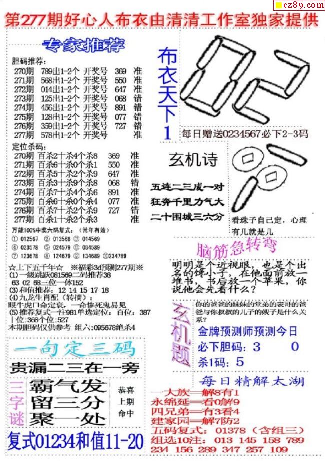 2020277期3D图谜汇总(八)