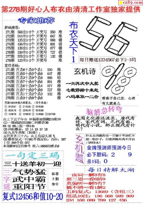 福彩3D2025334期 祁连牧哥百财纳福胆码图谜推荐