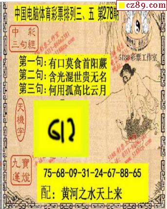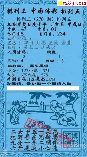 2020年278期牛彩网体彩P3画迷图谜汇总分享