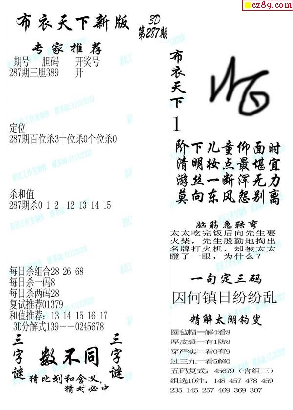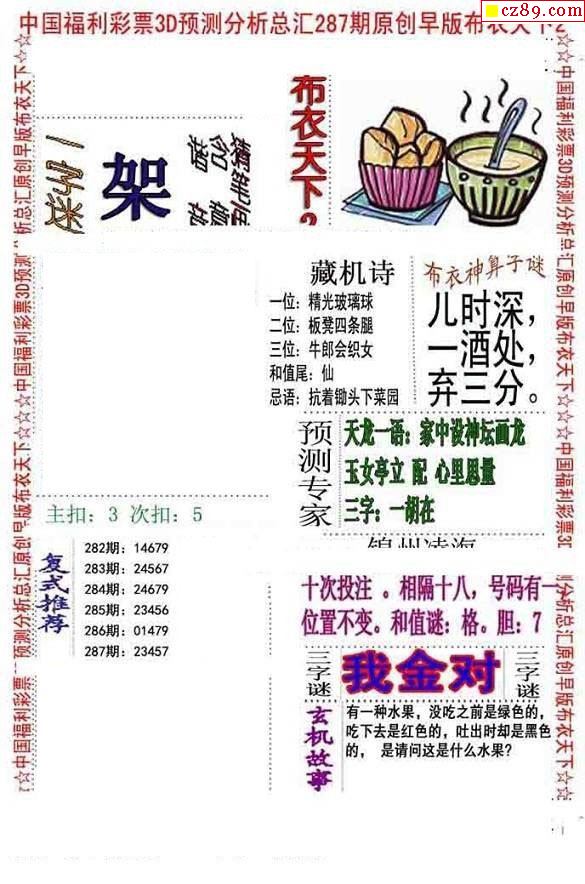 2020287期3d图谜汇总(五)