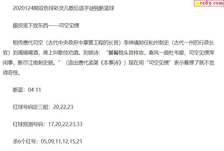 双色球033期 贾宝玉杀蓝号图谜 10中10