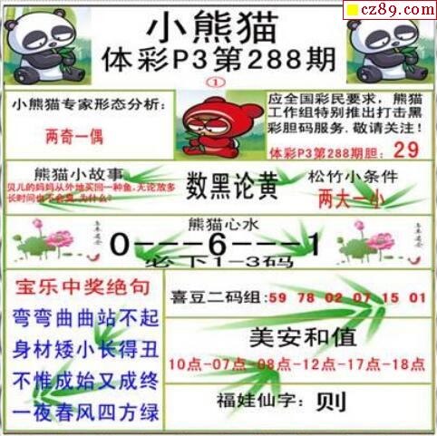 2020年288期牛彩网体彩P3画迷图谜汇总分享
