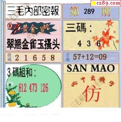 三毛图2020289期3d图谜