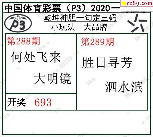 2020年289期牛彩网体彩P3画迷图谜汇总分享