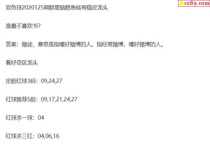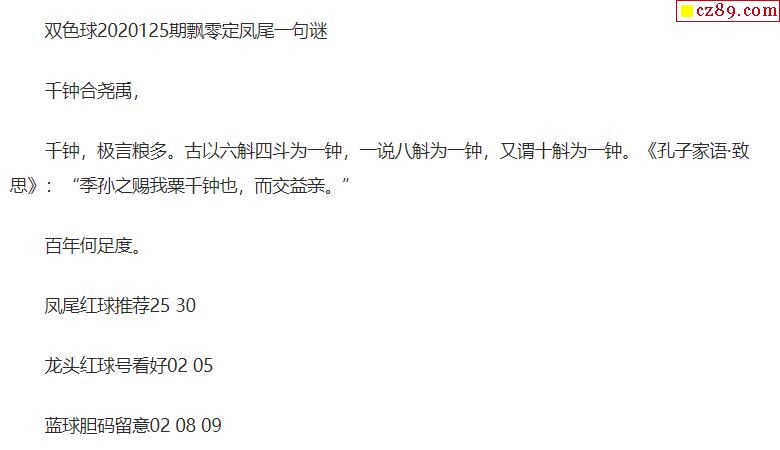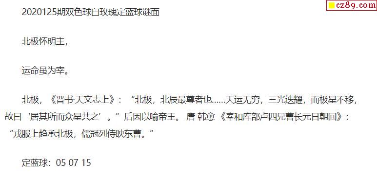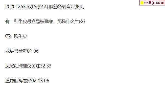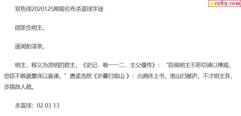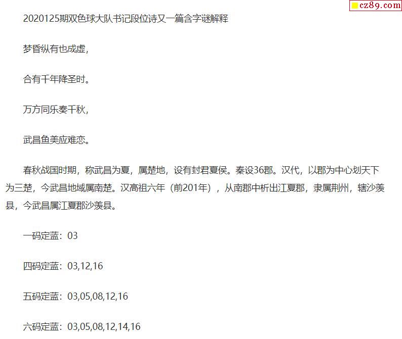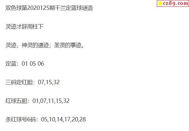 2020年125期牛彩网双色球字迷图谜汇总
