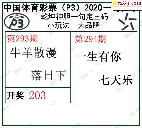 2020年294期牛彩网体彩P3画迷图谜汇总分享