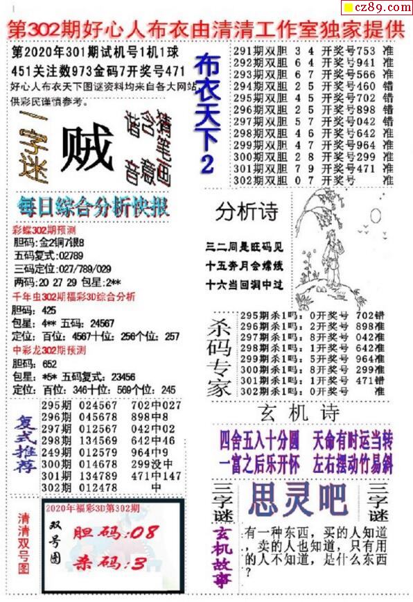 老夫子布衣2026045期3d图谜