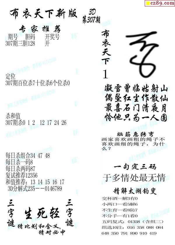 牛彩版3D字谜彩报图25年332期打印版
