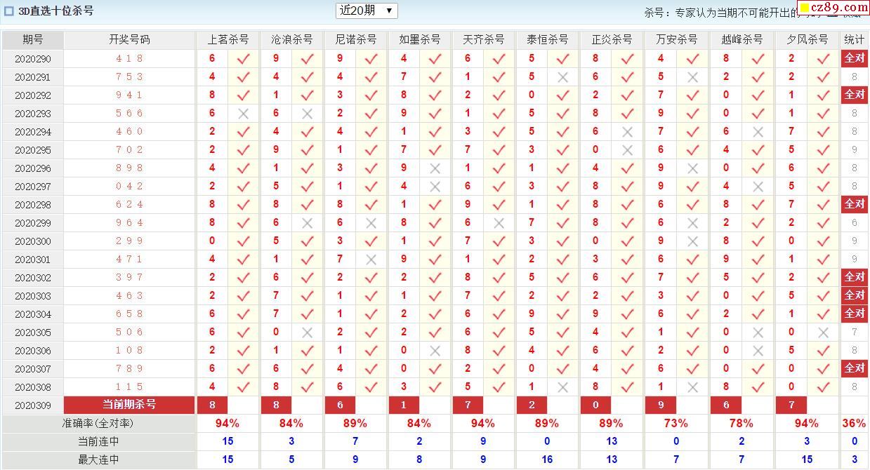 20年309期澳客专家福彩3D杀号定码推荐