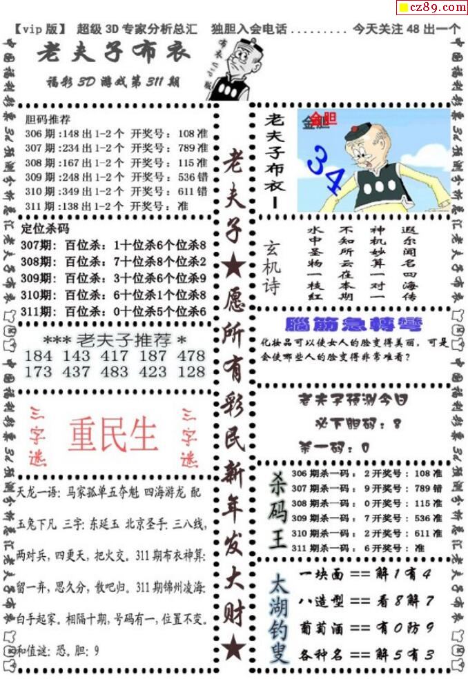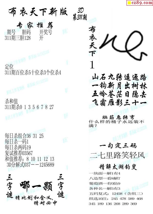 牛彩版3D字谜彩报图26年070期打印版