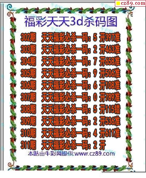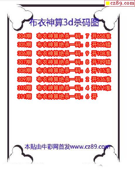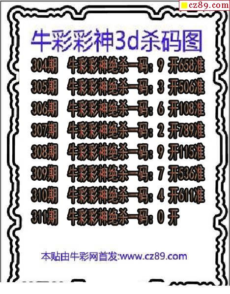 牛彩版3D预测彩报图26年032期打印版
