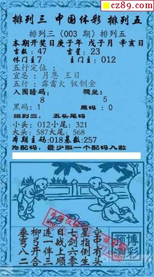 2021年003期牛彩网体彩P3画迷图谜汇总分享