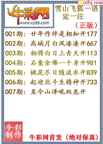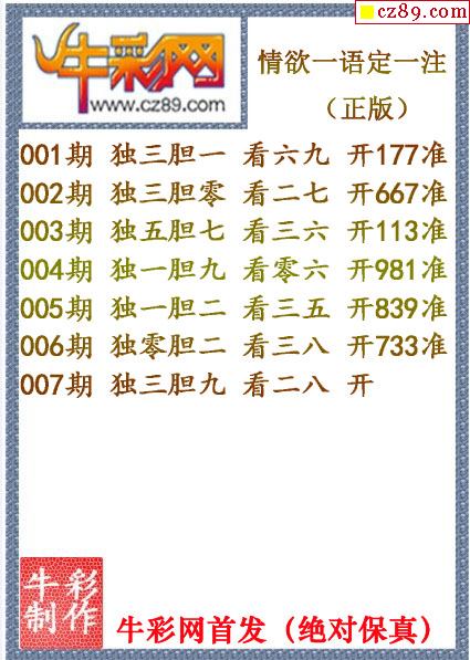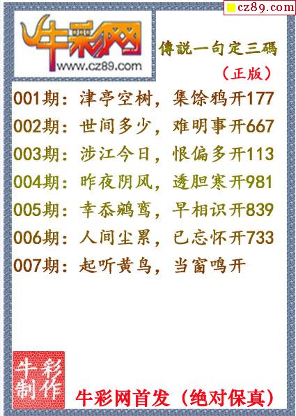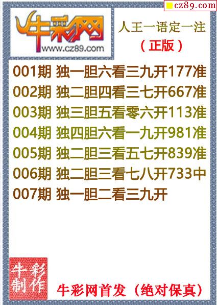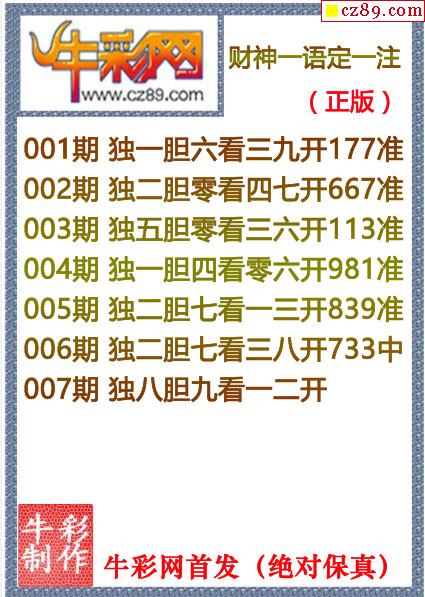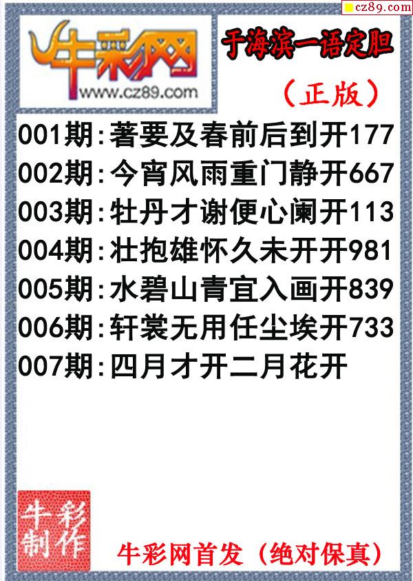牛彩版3D字谜彩报图25年290期打印版