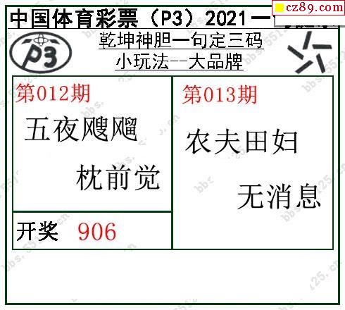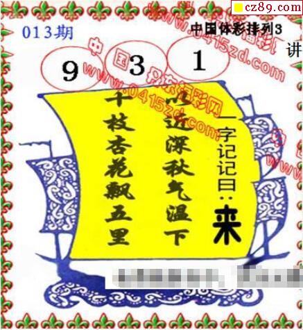 2021年013期牛彩网体彩P3画迷图谜汇总分享