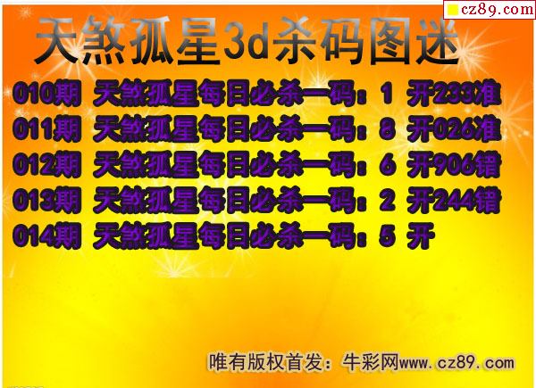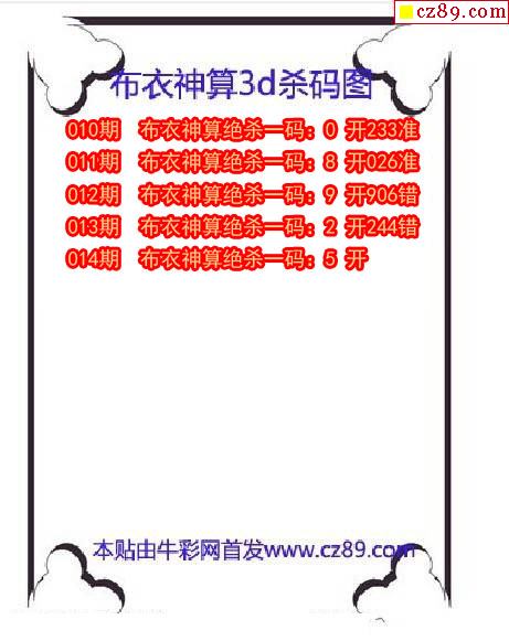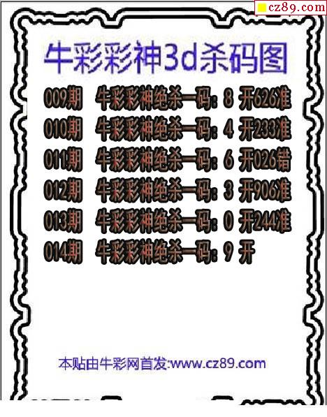 牛彩版3D预测彩报图26年030期打印版