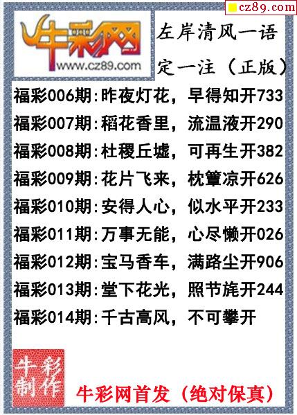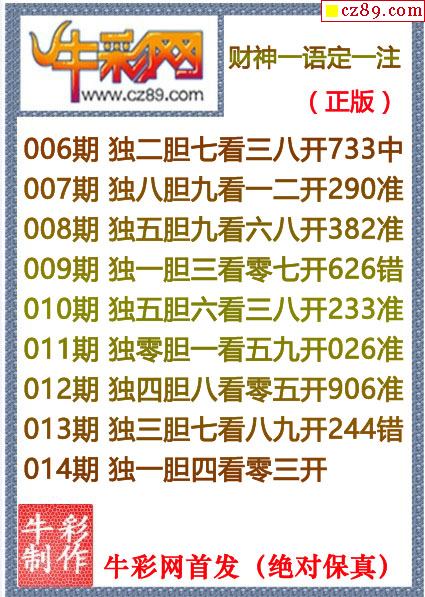 牛彩版3D字谜彩报图26年030期打印版