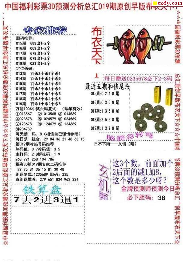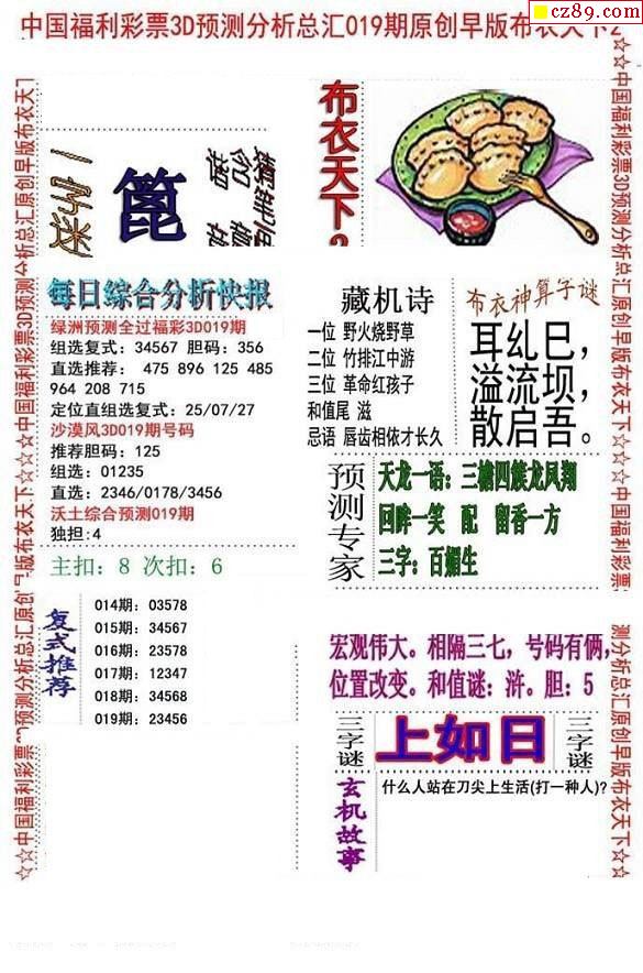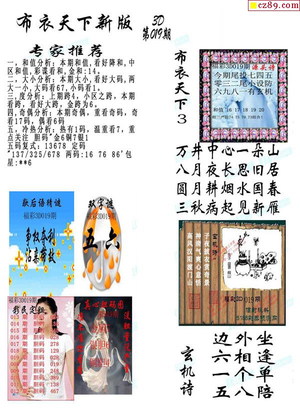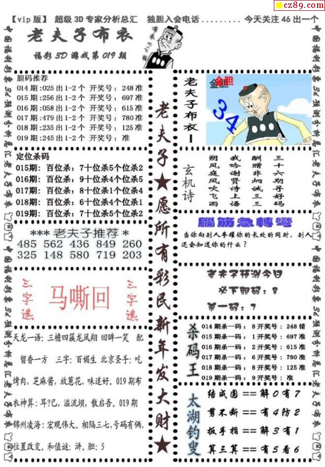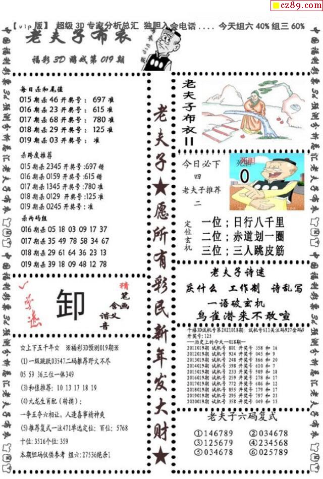 老夫子布衣2026019期3d图谜