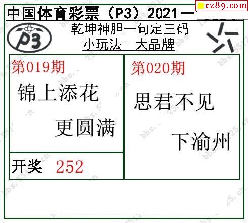2021年020期牛彩网体彩P3画迷图谜汇总分享