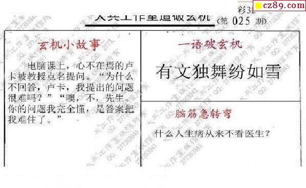 牛彩版3D字谜彩报图25年340期打印版