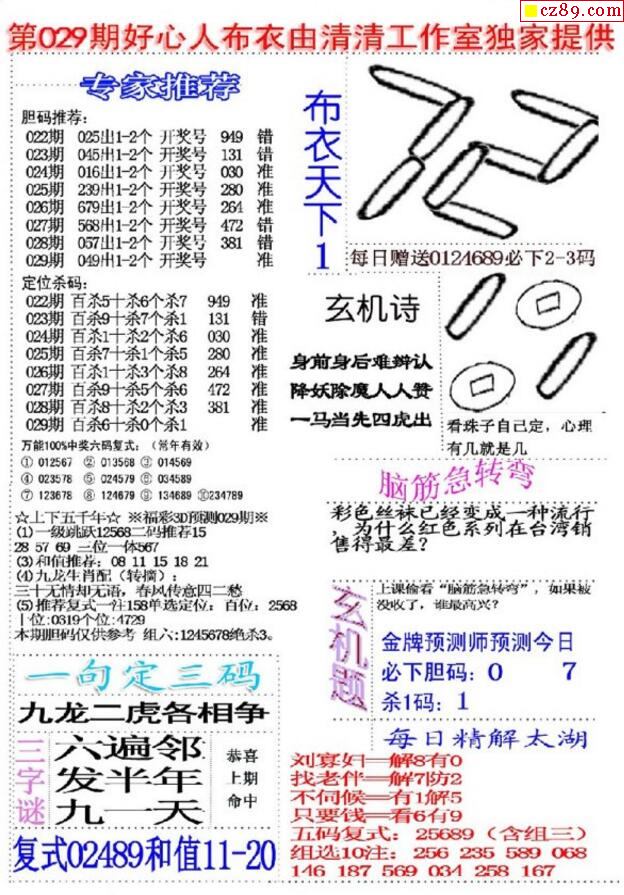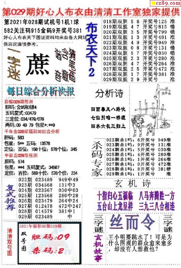 牛彩版3D字谜彩报图25年341期打印版