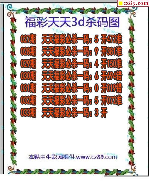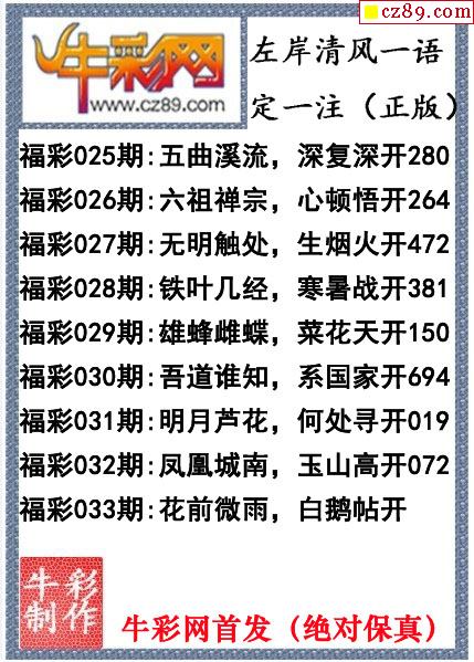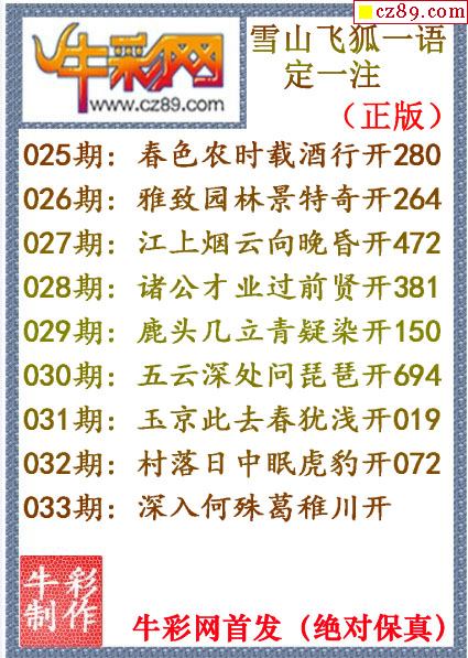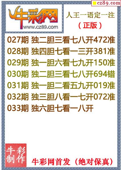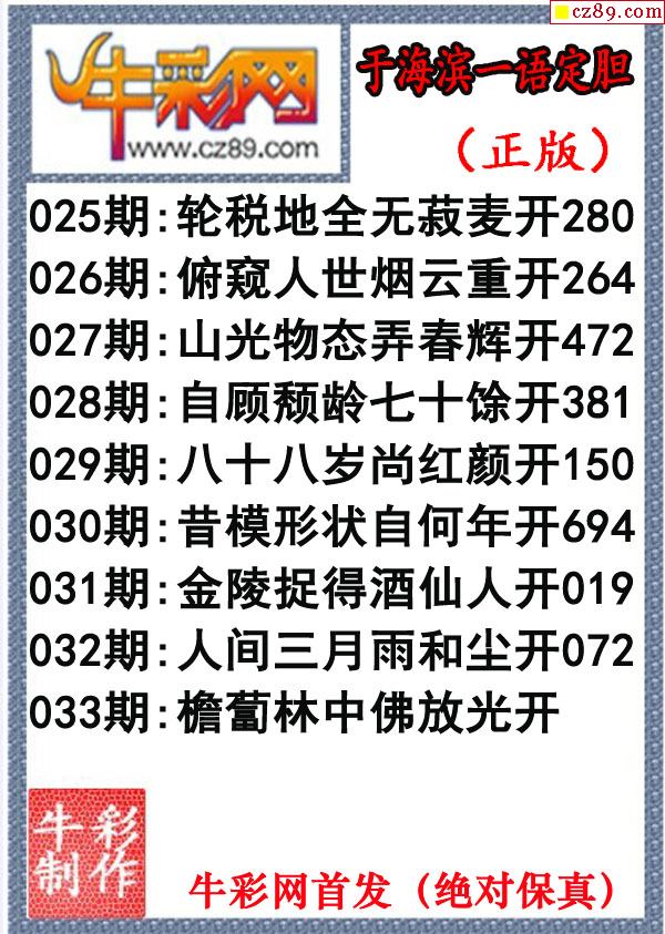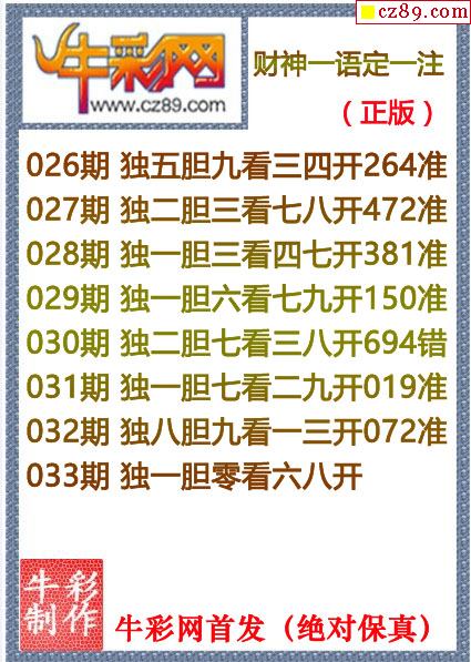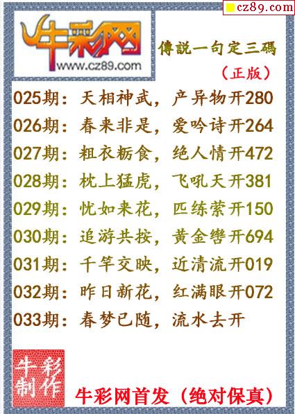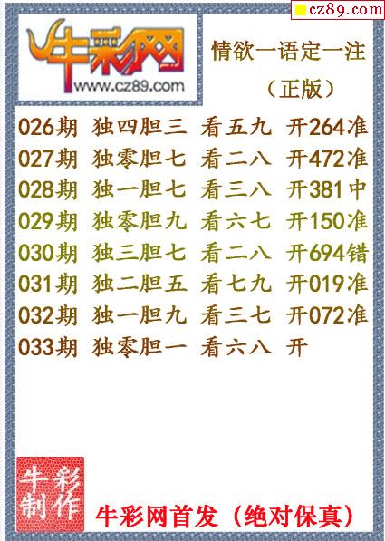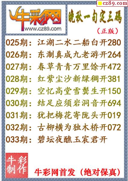 牛彩版3D字谜彩报图26年033期打印版