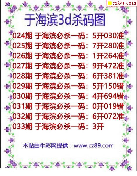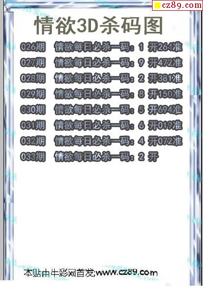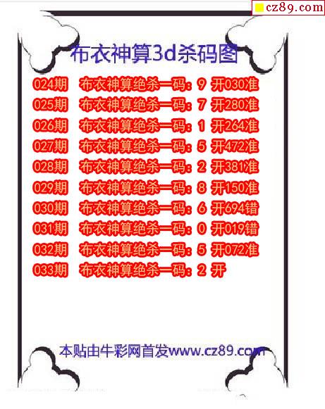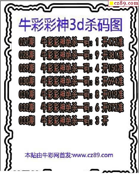 牛彩版3D预测彩报图26年033期打印版