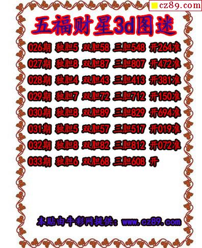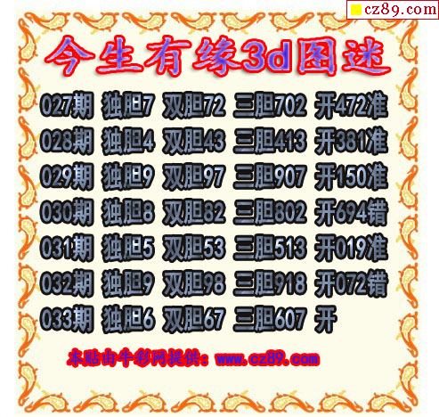 福彩3D2026033期图谜汇总