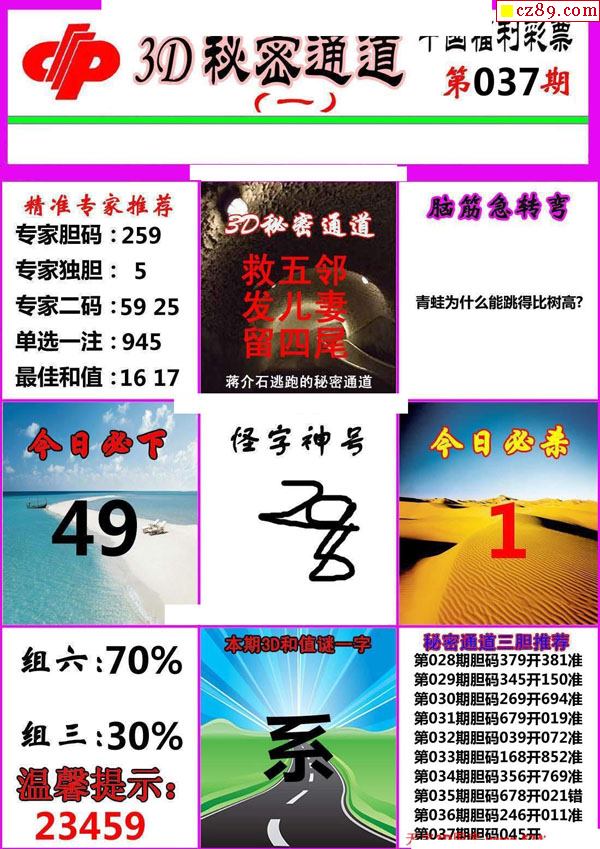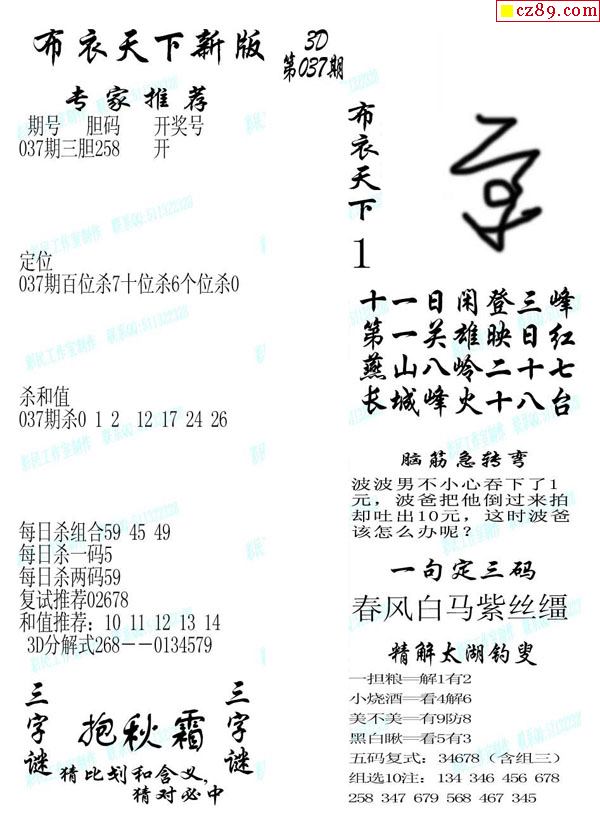 牛彩版3D字谜彩报图25年343期打印版