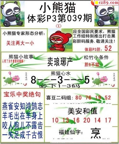 2021年039期牛彩网体彩P3画迷图谜汇总分享