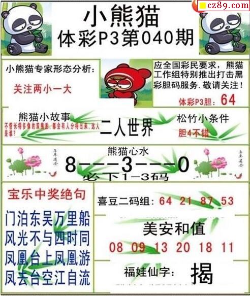 2021年040期牛彩网体彩P3画迷图谜汇总分享