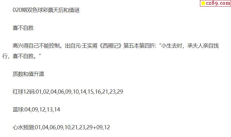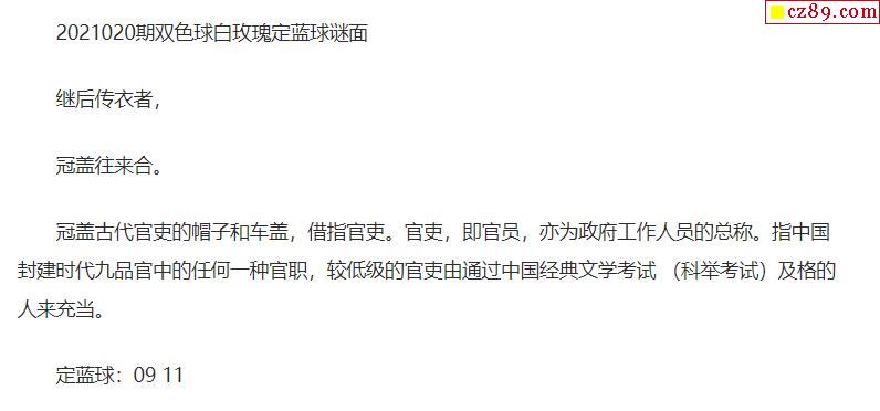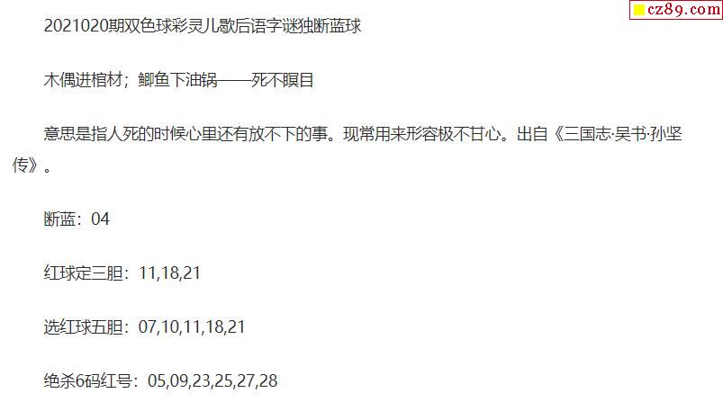 2021年020期牛彩网双色球字迷图谜汇总
