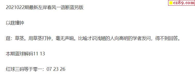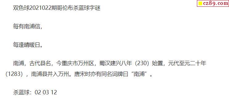 2021年022期牛彩网双色球字迷图谜汇总