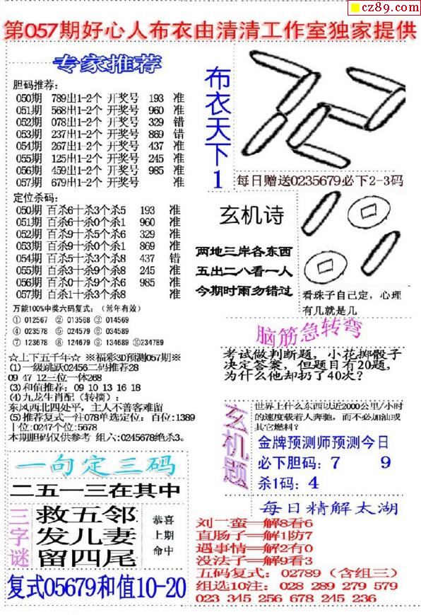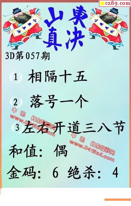 福彩3D2025335期 祁连牧哥百财纳福胆码图谜推荐