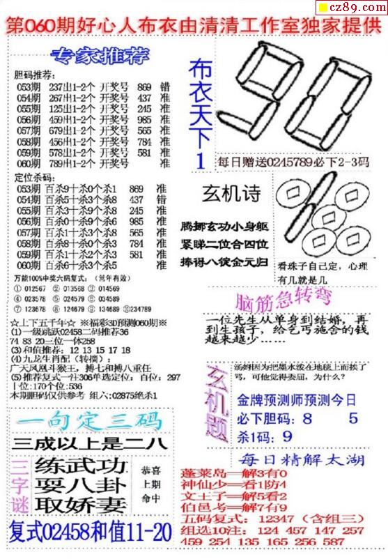 老夫子布衣2025340期3d图谜