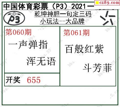 2021年061期牛彩网体彩P3画迷图谜汇总分享