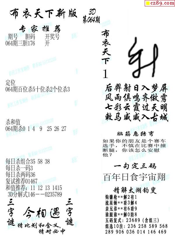 福彩3D2025336期 祁连牧哥百财纳福胆码图谜推荐