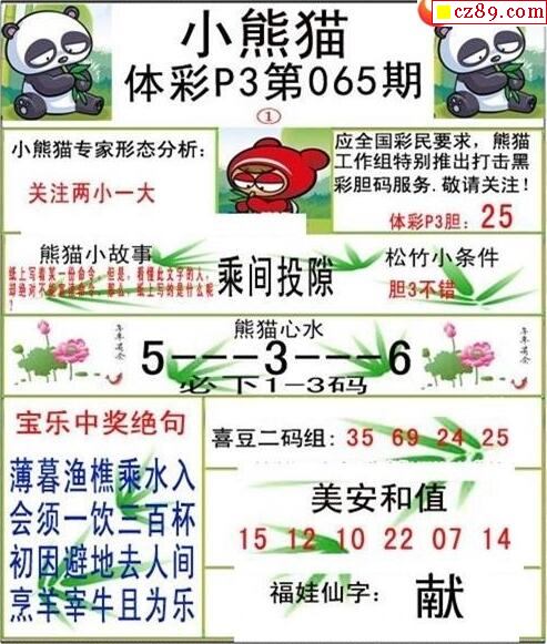 体彩P325年图迷332期 功夫熊猫内幕中奖图
