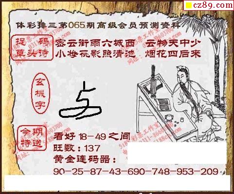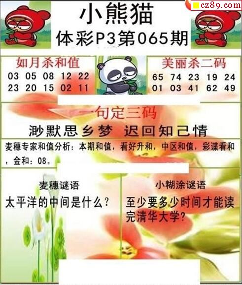 2021年065期牛彩网体彩P3画迷图谜汇总分享