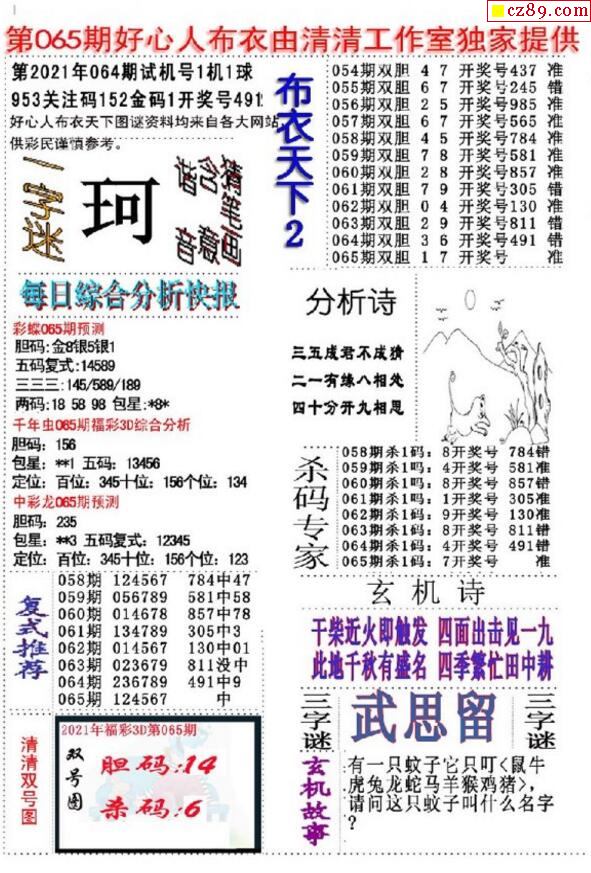 2021065期3D图谜汇总(八)