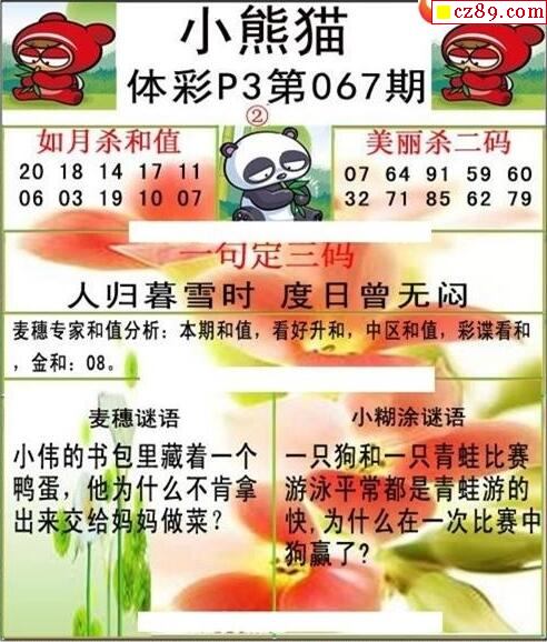 2021年067期牛彩网体彩P3画迷图谜汇总分享