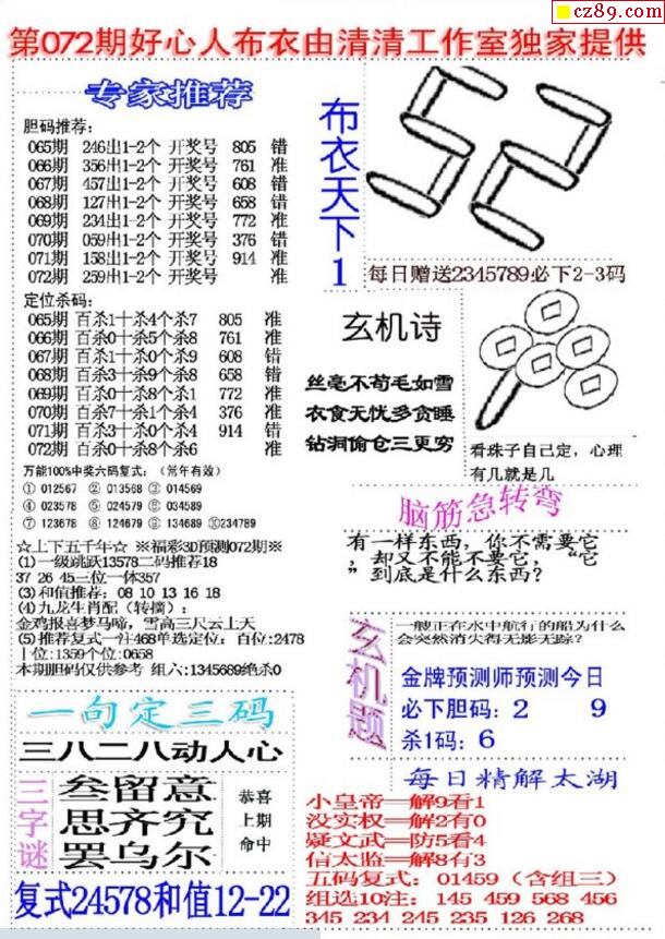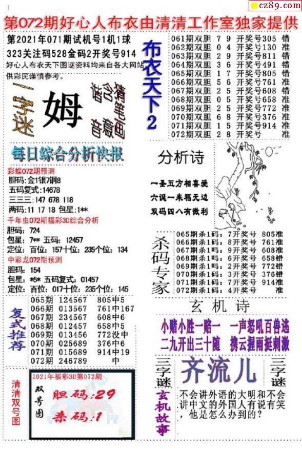 老夫子布衣2025342期3d图谜
