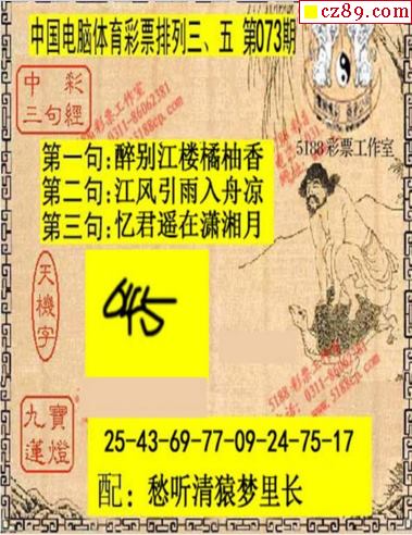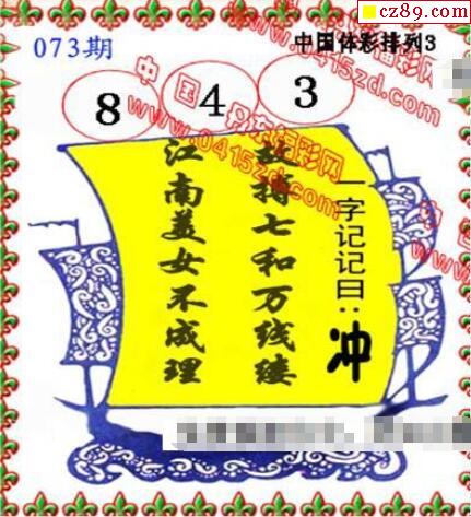 2021年073期牛彩网体彩P3画迷图谜汇总分享