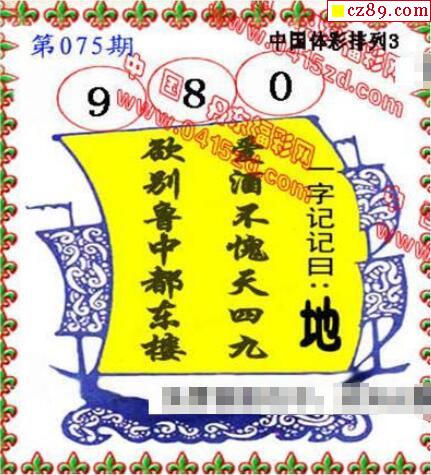 2021年075期牛彩网体彩P3画迷图谜汇总分享