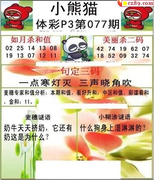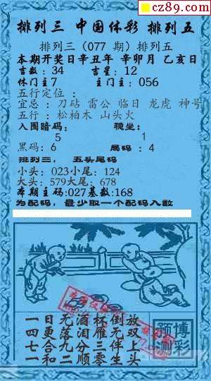 2021年077期牛彩网体彩P3画迷图谜汇总分享